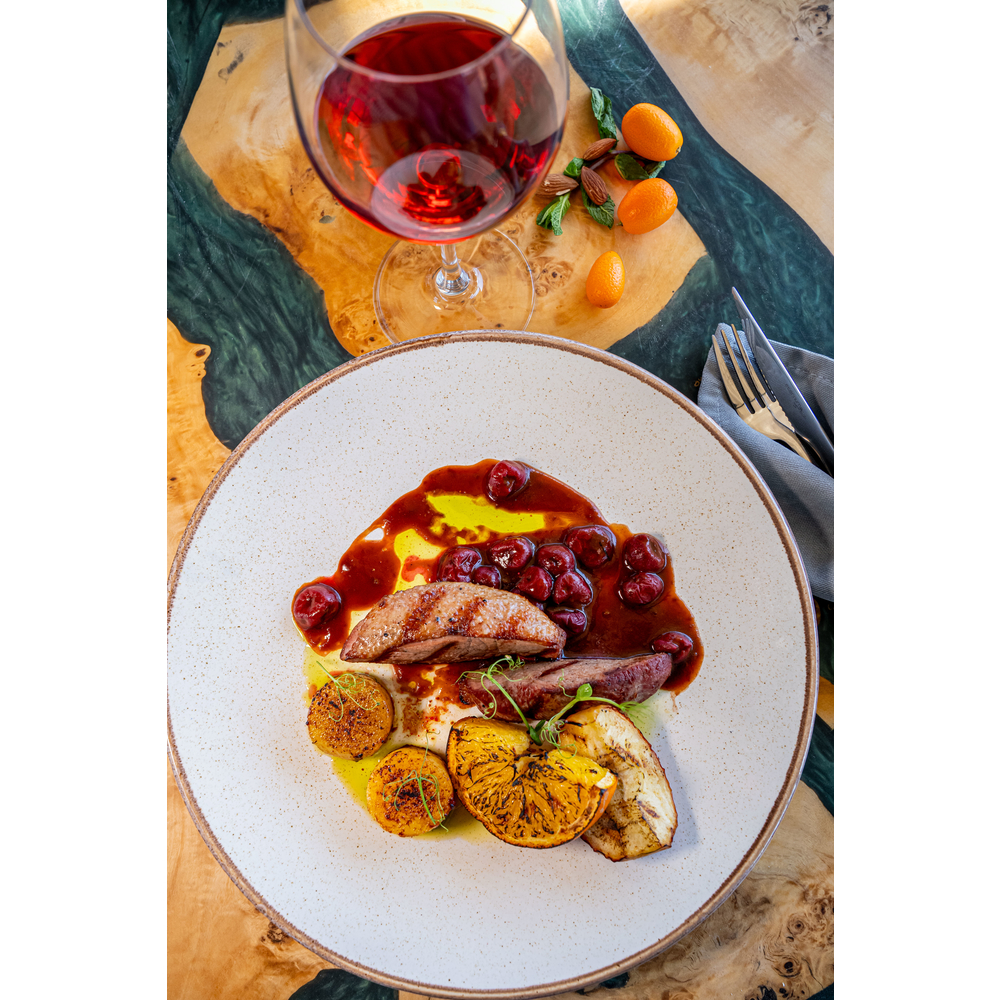 (14-21 день витримки у вакуумі за температури 2-4°C). Подається з гарніром та трьома видами соусів. (Ціна за повний набір +-530г)